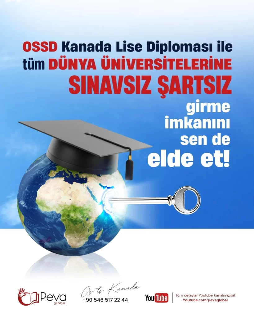 Peva Global & Royal Canadian High School işbirliği çerçevesinde sunulan OSSD Kanada Lise Diploması alma fırsatına sahip olmak için hemen harekete geç, sen de hak ettiğin bir dünya üniversitesinde yerini al.